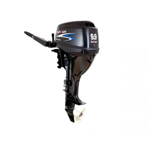 Модель F 9.9 BMS оснащена выпрямителем напряжения — благодаря ему можно заряжать электрооборудование. Большее передаточное число и более крупный винт с меньшим шагом лопастей повысили производительность. Запуск и управление у Parsun F 9.9 BMS ручные. Система подачи топлива карбюраторная — она неприхотлива к качеству бензина.